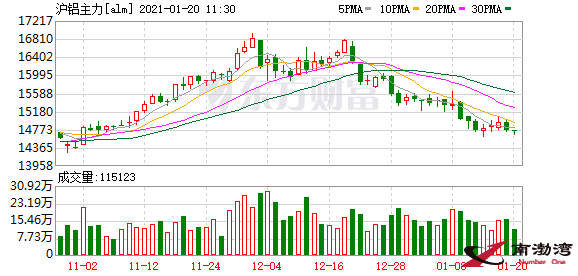 1月20日,國(guó)內(nèi)期貨市場(chǎng)上滬鋁主力合約再度走跌,早盤收于14725元/噸,盤中最低至14635元/噸。2020年12月末至今,該主力合約最大跌幅已達(dá)到11%。